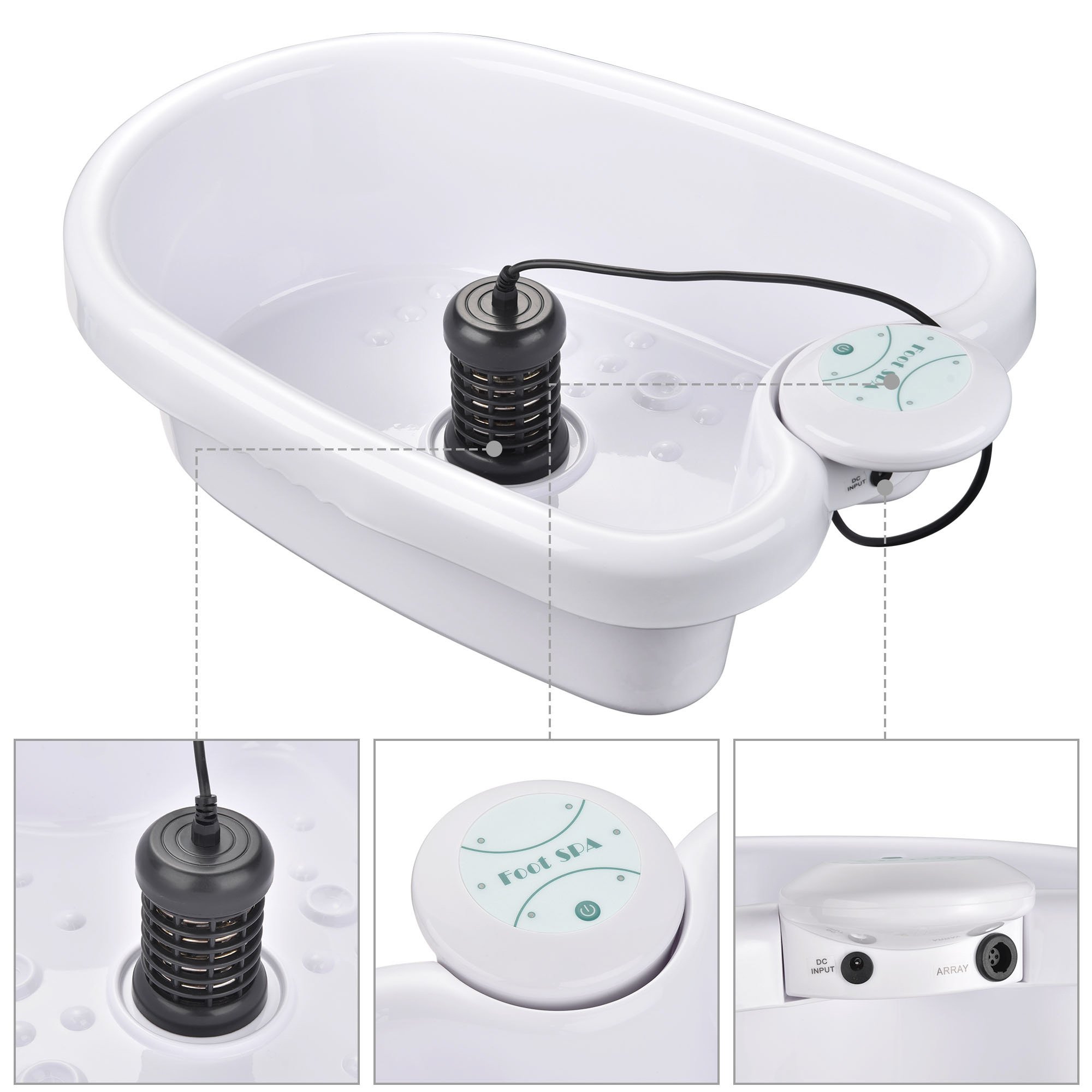 - Easy to Use - Foot bath machine with 30 minutes preprogrammed setting features 6 indicator lights for showing different treatment time; easy to operate by pressing button on control panel
