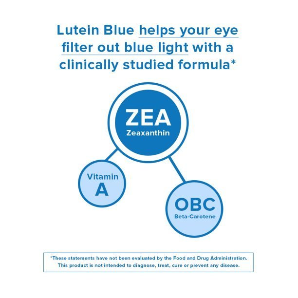 Nature's Bounty Lutein Blue Softgels help to protect eyes from the harmful blue light of electronic devices.* Made with a non-GMO formula; this eye health supplement has no artificial color; flavor or sweetener; and no gluten.* This blue light filtering supplement includes Vitamin A as Beta Carotene; Zinc; and Lutemax** 2020; a premium lutein formula with high levels of zeaxanthin to support eye health.* Our bodies cannot make lutein and zeaxanthin; and the natural stores of these carotenoids in the body may decrease as we age. Taking a supplement like Nature’s Bounty Lutein Blue can help fill important dietary gaps; as well as help protect your eyes from damaging blue light.* Adults can take one softgel a day; preferably with a meal.