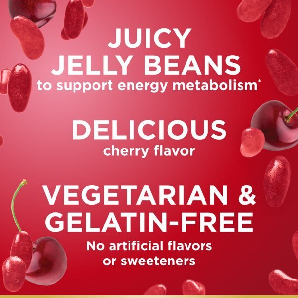 Need a fun and enjoyable way to support energy? Support yourbody’s energy metabolism with NEW Nature’s Bounty® Energy Jelly Beans!* Thesweet; cherry-flavored formula contains Vitamin B12 which is designed to helpyour body convert food into cellular energy so you can continue to conquer theday; one juicy jelly bean at a time.* For added benefits; Nature’s Bounty®Energy Jelly Beans are gelatin-free; making them suitable for vegetarians.Plus; they’re NON-GMO; contain naturally sourced colors and free of artificialflavors and sweeteners. See what the buzz is all about by making Nature’sBounty® Energy Jelly Beans part of your wellness routine.*These statements have not been evaluated by the Food and Drug Administration. This product is not intended to diagnose; treat; cure; or prevent any disease.