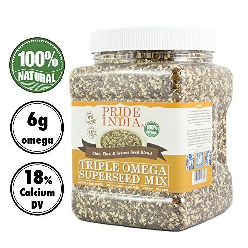 Pride Of India - Triple Omega Superseed Mix - Protein, Fiber, Calcium, Iron, Omega-3, Omega-6, Thiamin Rich Superfood w/Chia Flax & Sesame Seeds, Pride Of India - Triple Omega Superseed Mix - Protein, Fiber, Calcium, Iron, Omega-3, Omega-6, Thiamin Rich Superfood w/Chia Flax & Sesame Seeds, Pride Of India - Triple Omega Superseed Mix - Protein, Fiber, Calcium, Iron, Omega-3, Omega-6, Thiamin Rich Superfood w/Chia Flax & Sesame Seeds, Pride Of India - Triple Omega Superseed Mix - Protein, Fiber, Calcium, Iron, Omega-3, Omega-6, Thiamin Rich Superfood w/Chia Flax & Sesame Seeds,