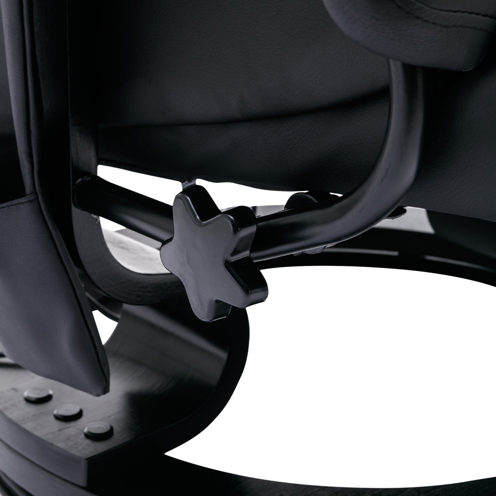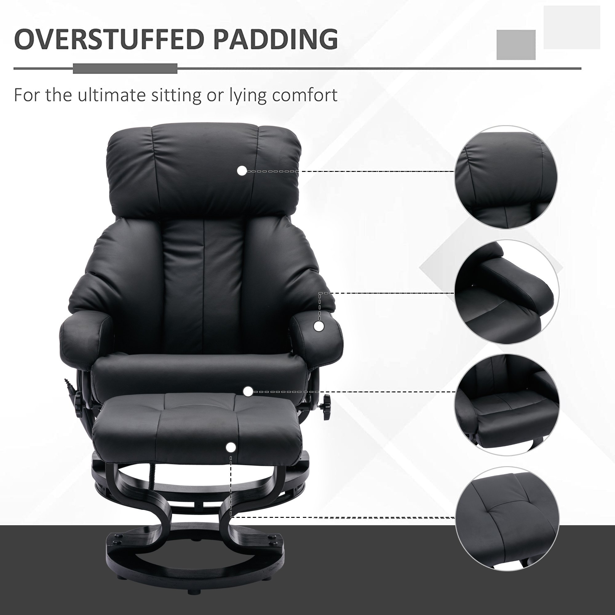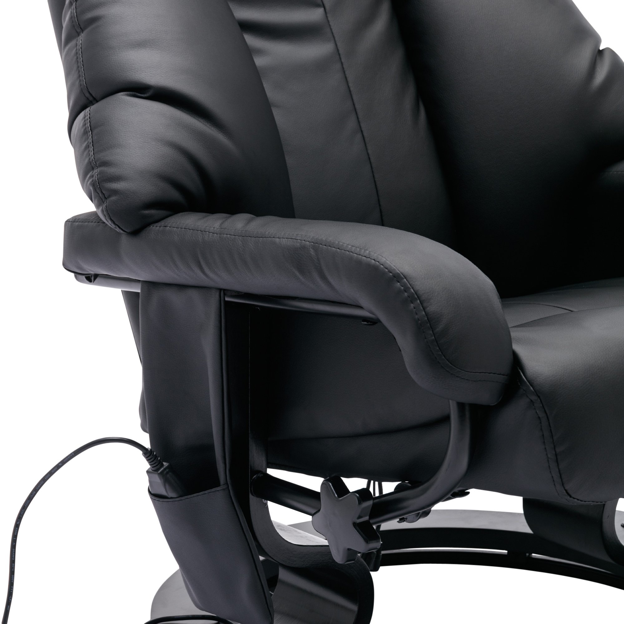 Home > Recliner with Ottoman Footrest, Recliner Chair with Vibration Massage, Faux Leather and Swivel Wood Base for Living Room and Bedroom, Black