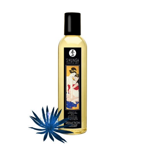 Shunga Erotic Massage Oil Midnight Flower Seduction 8.4 fluid ounces features: 100% natural cold pressed oils. Vitamin E antioxidant. No greasy residue. Will not clog pores No mineral or animal oil. This 100% natural oil with intoxicating fragrances glides easily and smoothly over the skin without leaving a greasy residue. How to use: pour a small amount into the palm of your hand and rub your hands together to bring the oil to body temperature. If desired, you can heat the oil in hot water for an even hotter touch.<br /><br /> Ingredients: Sweet Almond Oil, Grape Seed Oil, Sesame Oil, Avocado Oil, Pecan Oil, Safflower Oil, Vitamin E, Fragrance, Amyl Cinnamal, Benzyl Alcohol, Citral, Eugenol, Methyleugenol, Benzyl Salicylate, Coumarin, D-Limonene, Methyl 2-Octynoate, Geraniol, Farnesol, Lilial, Linalool, Benzyl Benzoate, Citronellol, Hexyl Cinnamal, Alpha-Isomethyl Ionone, Butylated hydroxytoluene (BHT), Lyral, Cinnamyl alcohol, IsoEugenol, Hydroxycitronella.