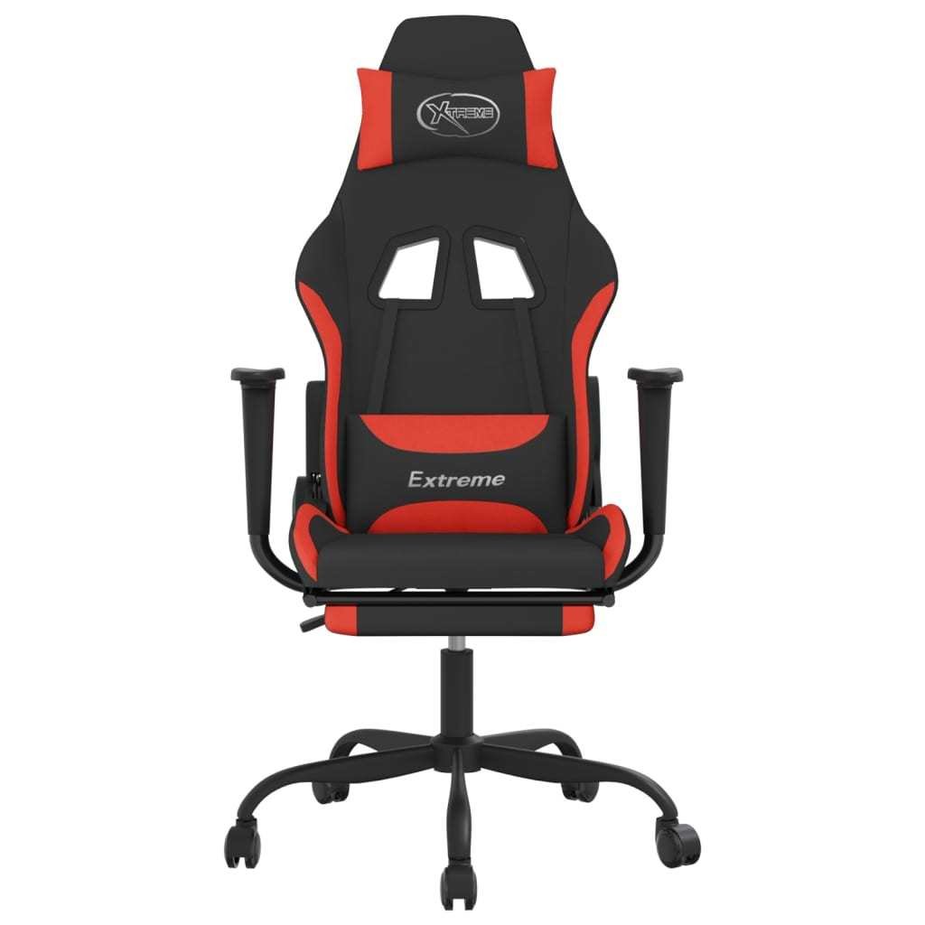 Massage Gaming Chair with Footrest Black and Red Fabric