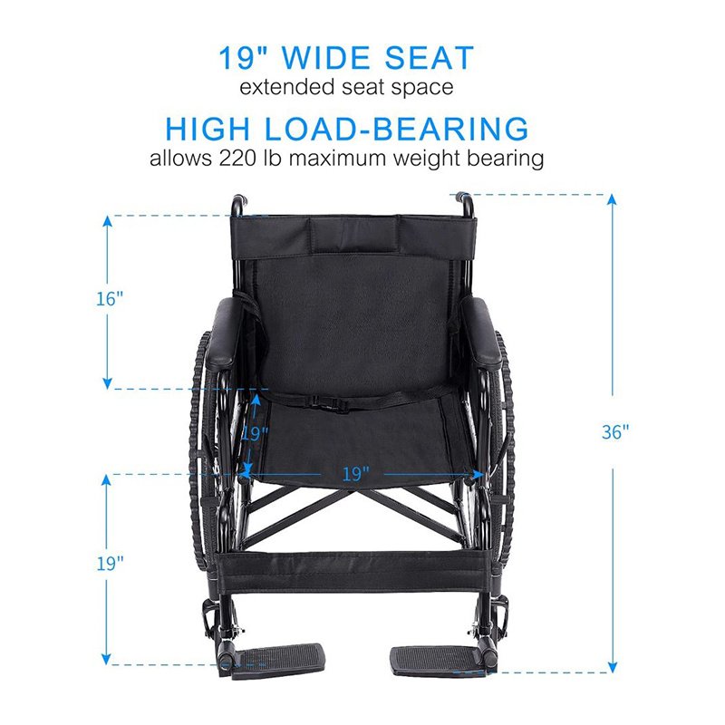 Folded Wide: 18'' ; Seat Wide: 19''; Rear Wheel Size: 24 Inch; Caster: 7 inch PVC.