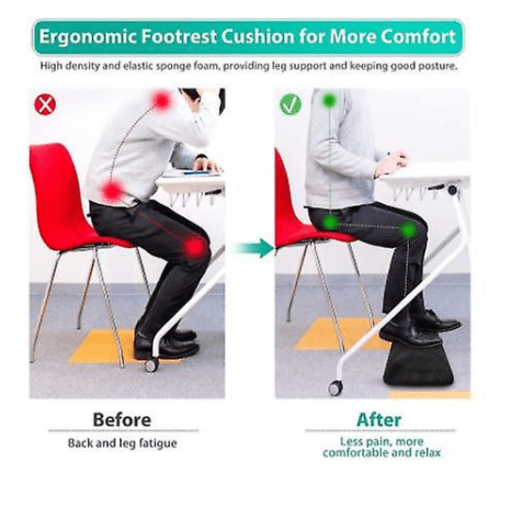 Ergonomic Foot Rest OfficeAllowing you to place your feet so that your posture can be extended without requiring too much extra effort from the muscles in your back and legs, which helps you to keep good posture and blood circulation while sitting for long periods time of working in the office or at home, even when you are playing game. Not only can footstool correct sitting posture but also help relieve discomfort in the shoulder or intervertebral disc area. User Friendly Design Footstools' dimension with 40 x 20 x 10cm is great for matching the height of your chair, lifting your feet to a comfortable height to place your feet so that your posture can be extended without requiring too much extra effort from the muscles in your back and legs, bringing you a comfortable ergonomic experience. You can also move the footrest cushion under your knees or ankles when you sit on the floor or lie down. Versatile and Multi-UseAs foot support, keeping the soles of your feet relaxed and improving your sitting posture As ankle rocker, flipping the pillow over to a rocker if you prefer to move your legs and ankles while sitting for a long time As knee support, helping raise your knees when lying on the sofa to improve blood circulation in the legs, and also provide a comfortable height when you are working. High Quality Material Foot rest stools cushion memory foam pillow is made of high-density memory foam with excellent flexibility and firmness, providing optimum comfort and main support for your feet. The underside with high-quality silicone can not only prevent slippery, but also has gentle massage function. The pillowcase can be easily removed for cleaning and reusing. The zipper is located on the side of the mat. Well AssembledThis desk foot rest can be used directly without installing. The smooth zipper on the side of the cover also makes it easier to remove and install. The washable and breathable mesh cover is convenient to clean. Suitable for your office, home, sofa, travel. Moreover, it also can be a excellent foot stand under desk for your child.