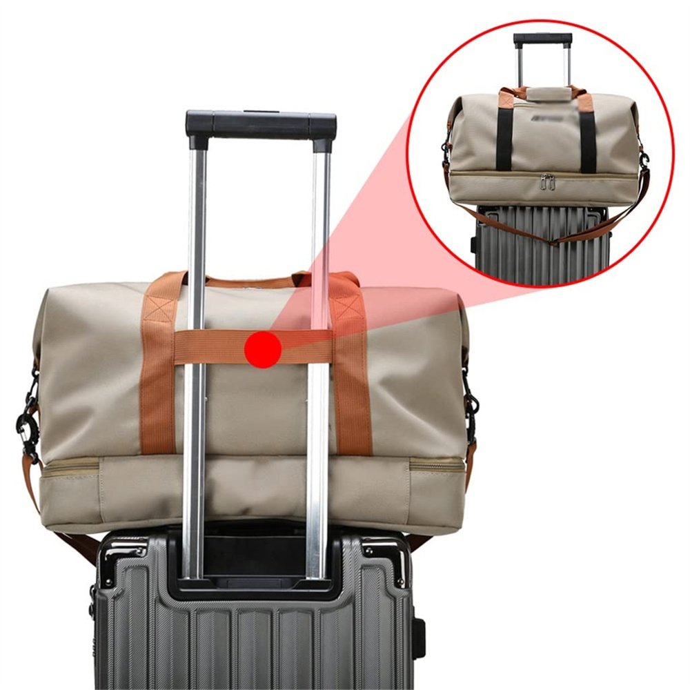 Separate Shoe Compartment: The bottom of the bag features a separate zippered compartment for shoes, keeping them away from your clean clothes and maintaining hygiene.