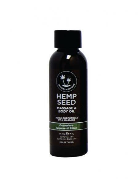 Earthly Body Massage Oil is made using 100% natural blend of essential oils, including hemp, almond, grape seed, apricot and vitamin E. Massage oil provides a slick, professional glide. Better yet, this nutrient rich formula absorbs into the skin for deep conditioning and moisturizing without a greasy residue. Whether you choose unscented or one of our exotic fragrances, you will not need or want to wash it off. Earthly Bodys all natural, professional glide massage oil uses the finest fusion of vitamin rich skin oils to provide an unparalleled slip and penetrating softness. <br /><br />Available in 11 exotic fragrances and 4 non-sticky edibles, this non-greasy hemp oil formula leaves the skin smooth and supple post massage. Why settle for boring and bland massage oil when you can indulge in the finest of natural ingredients, and scents that suit each mood? This heavenly scented, all natural professional grade massage oil is 100 percent vegan and free of harmful ingredients such as parabens, mineral oil, dyes, propylene glycol, sulfates and alcohol. Massage Body Oils safe and effective ingredients are perfect for even the most sensitive and picky skins.<br /><br /> Ingredients: Prunus Amygdalus Dulcis Oil, Prunus Armenica Kernel Oil, Vitis Vinifera Seed Oil, Cannabis Sativa Seed Oil, Persea Gratissima Oil, Sesamum Indicum Seed Oil, Parfum, Tocopherol, Rosmarinus Officinalis Leaf Oil. Volume 2 fluid ounces. Fragrance Guavalava. Made in the USA.