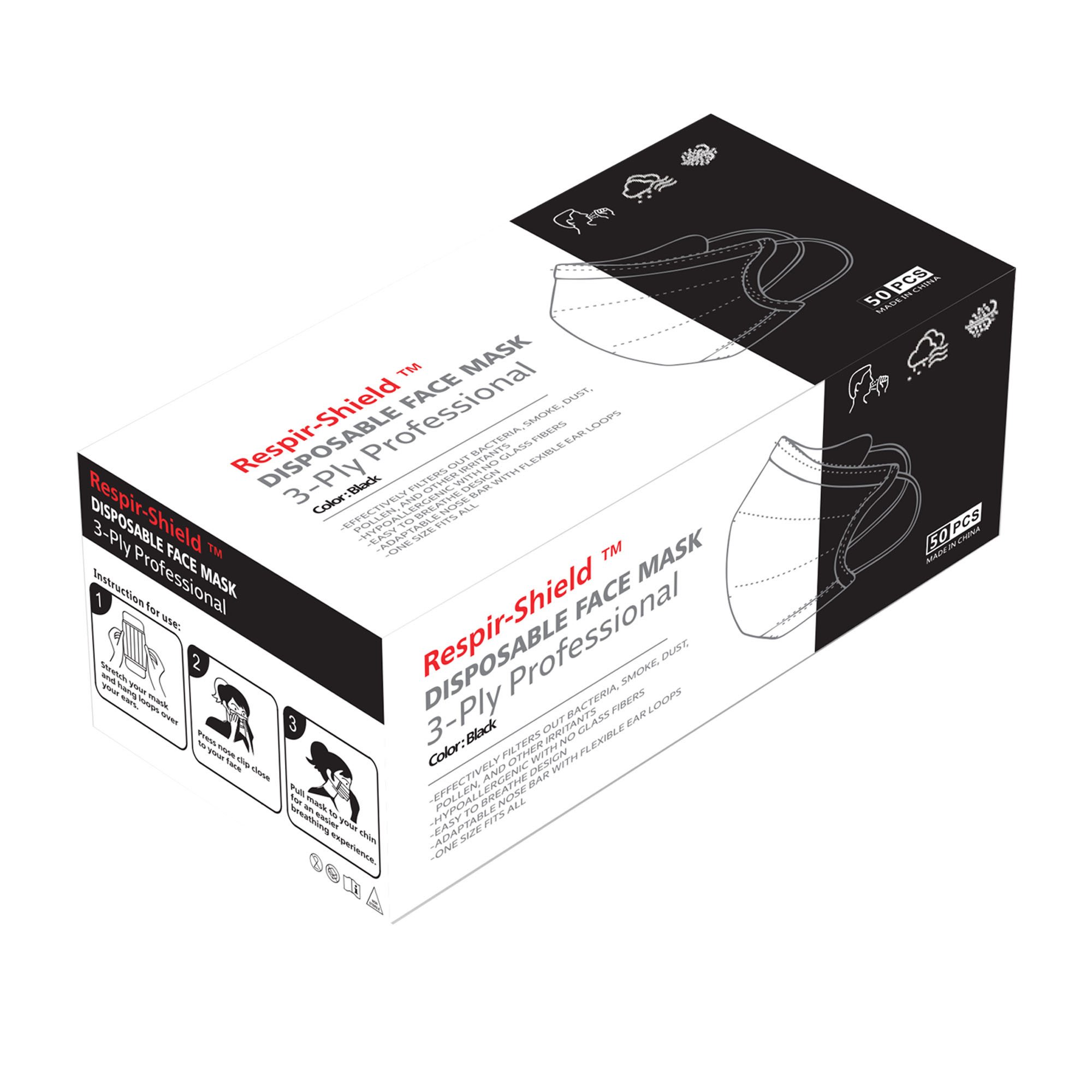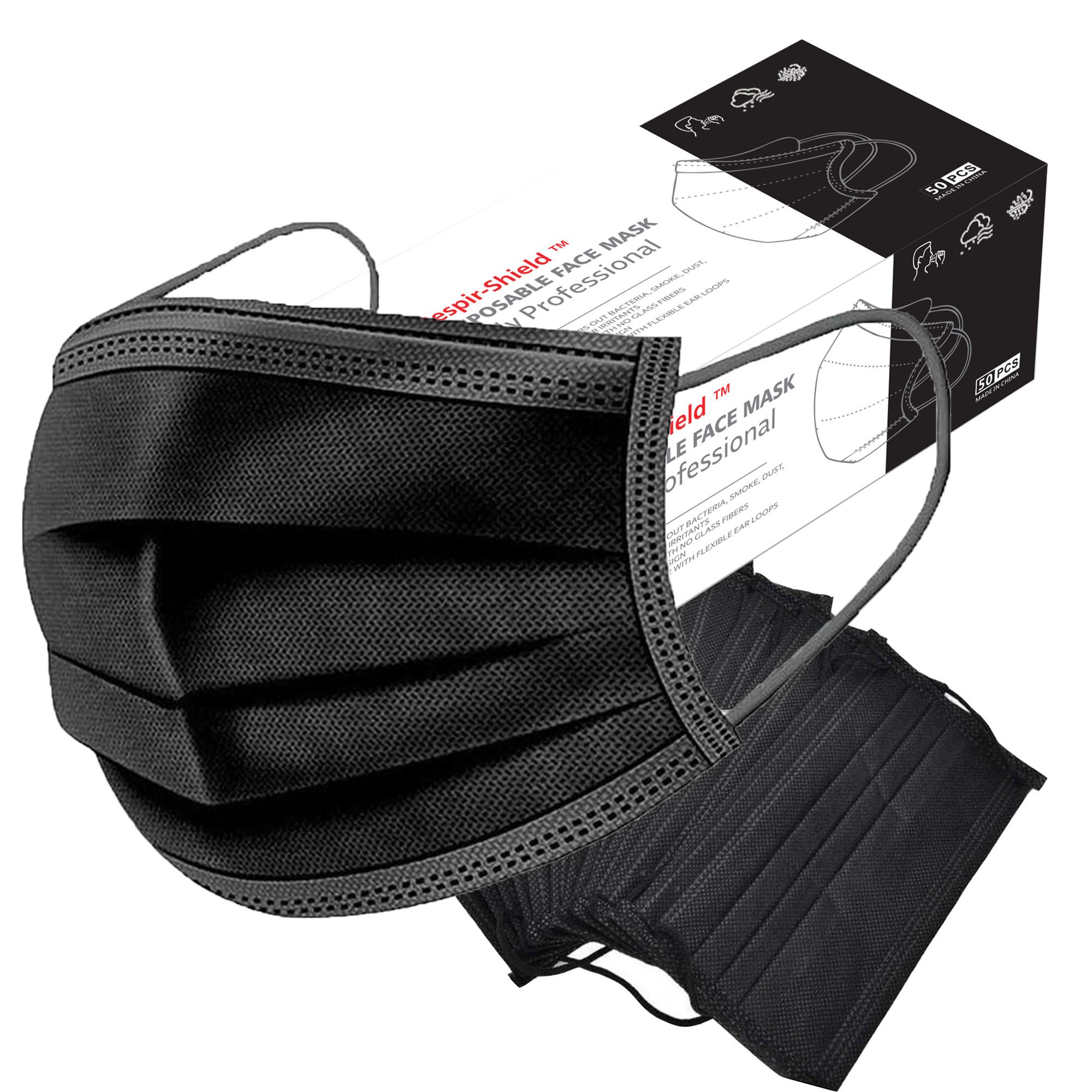 Respir-Shield™ 50PCS - 3 PLY Black Non-Medical Disposable Face Masks;  Comfortable Elastic Ear loops Face Masks;  Breathable for Daily Protection Air Respir-Shield™ 50PCS - 3 PLY Black Non-Medical Disposable Face Masks;  Comfortable Elastic Ear loops Face Masks;  Breathable for Daily Protection Air Respir-Shield™ 50PCS - 3 PLY Black Non-Medical Disposable Face Masks;  Comfortable Elastic Ear loops Face Masks;  Breathable for Daily Protection Air Respir-Shield™ 50PCS - 3 PLY Black Non-Medical Disposable Face Masks;  Comfortable Elastic Ear loops Face Masks;  Breathable for Daily Protection Air Respir-Shield™ 50PCS - 3 PLY Black Non-Medical Disposable Face Masks;  Comfortable Elastic Ear loops Face Masks;  Breathable for Daily Protection Air