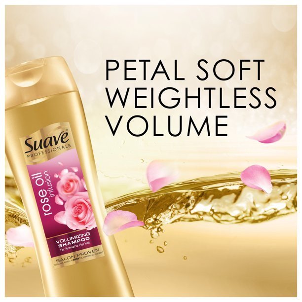 Suave Professionals Rose Oil Infusion Volumizing Shampoo is a beautiful blend infused with pure rose oil that works as a system with the conditioner to provide weightless; natural body and bounce. This range provides uplifting volume; touchably softness; and boosts shine for beautiful; healthy hair that's visibly full. Discover light; vivacious body with long lasting sweet fragrance that you'll love running your hands through.For weightless body; touchably softness; and irresistible fragrance; use together with Rose Oil Infusion Volumizing Conditioner. This line of products is ideal for people with flat hair. Matrix; Oil Wonders and Volume Rose are registered trademarks of L'Oral USA Creative; Inc.Achieve Salon-Quality ResultsSuave Professionals is salon-proven to work as well as salon brands; helping you achieve a variety of beautiful hairstyles while caring for your hair.