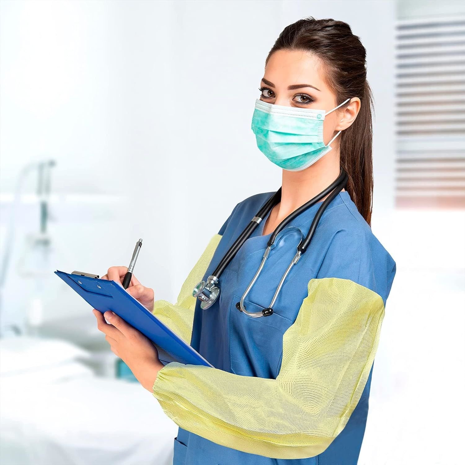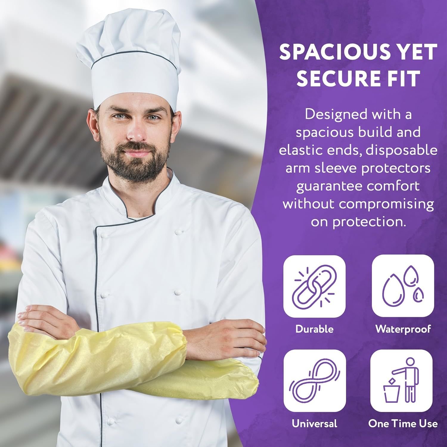 • Plastic sleeve protectors protect your forearms against water; dirt; spills; splashes; light fluid spray; powder contaminants and particle barrier; and effectively protect clothing.