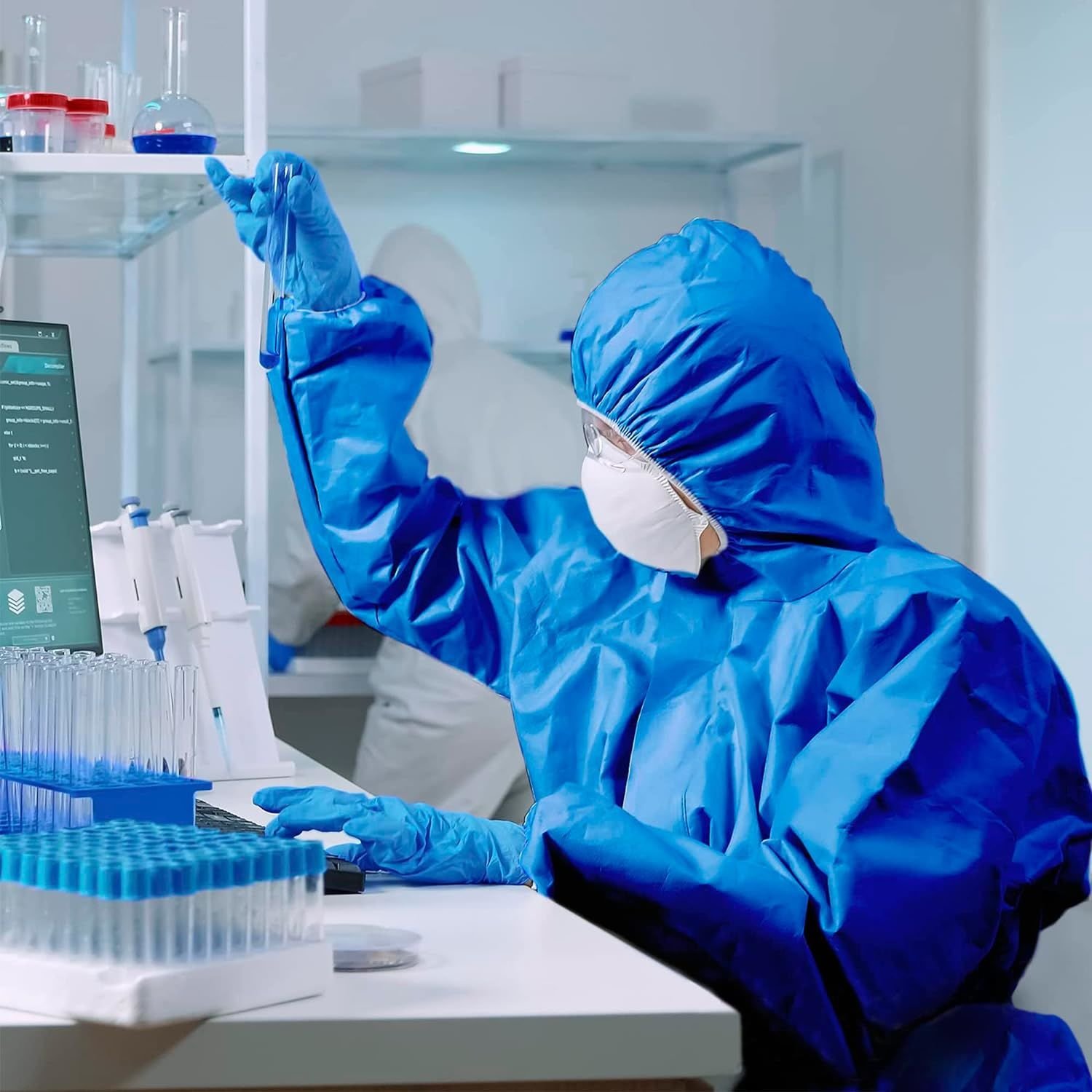 Home > Disposable Coveralls with Hood Large; Pack of 5 Blue Hazmat Suits Disposable with Front Zip; Elastic Wrists & Ankles; 50gsm SMS Lab Coveralls Disposab
