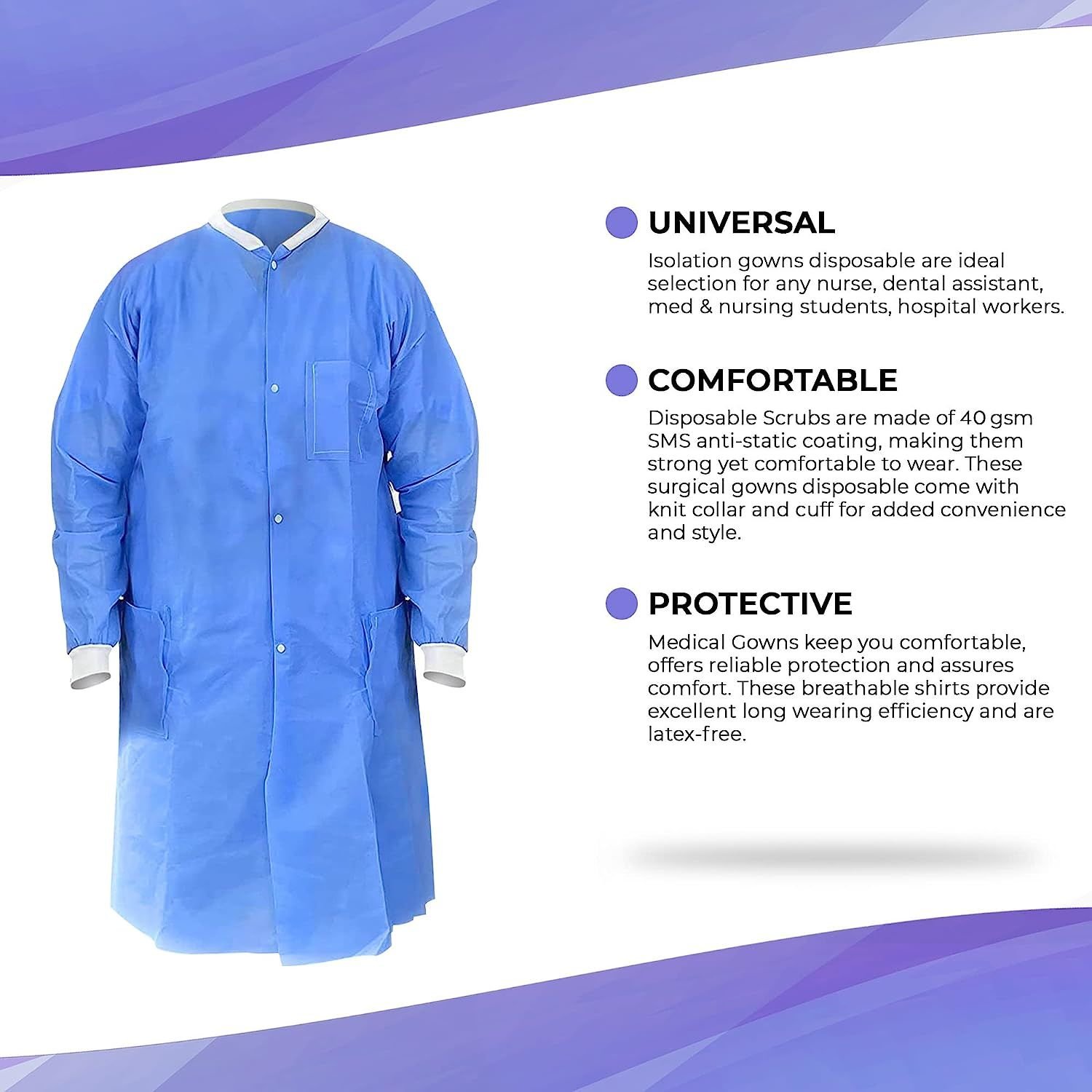 Disposable Lab Coats for Men & Women; Large. Pack of 10 Blue Surgical Gowns. 40 gsm SMS Unisex Medical Gowns with Long Sleeves; Knit Collar; Cuffs; 3 Disposable Lab Coats for Men & Women; Large. Pack of 10 Blue Surgical Gowns. 40 gsm SMS Unisex Medical Gowns with Long Sleeves; Knit Collar; Cuffs; 3 Disposable Lab Coats for Men & Women; Large. Pack of 10 Blue Surgical Gowns. 40 gsm SMS Unisex Medical Gowns with Long Sleeves; Knit Collar; Cuffs; 3 Disposable Lab Coats for Men & Women; Large. Pack of 10 Blue Surgical Gowns. 40 gsm SMS Unisex Medical Gowns with Long Sleeves; Knit Collar; Cuffs; 3 Disposable Lab Coats for Men & Women; Large. Pack of 10 Blue Surgical Gowns. 40 gsm SMS Unisex Medical Gowns with Long Sleeves; Knit Collar; Cuffs; 3 Disposable Lab Coats for Men & Women; Large. Pack of 10 Blue Surgical Gowns. 40 gsm SMS Unisex Medical Gowns with Long Sleeves; Knit Collar; Cuffs; 3