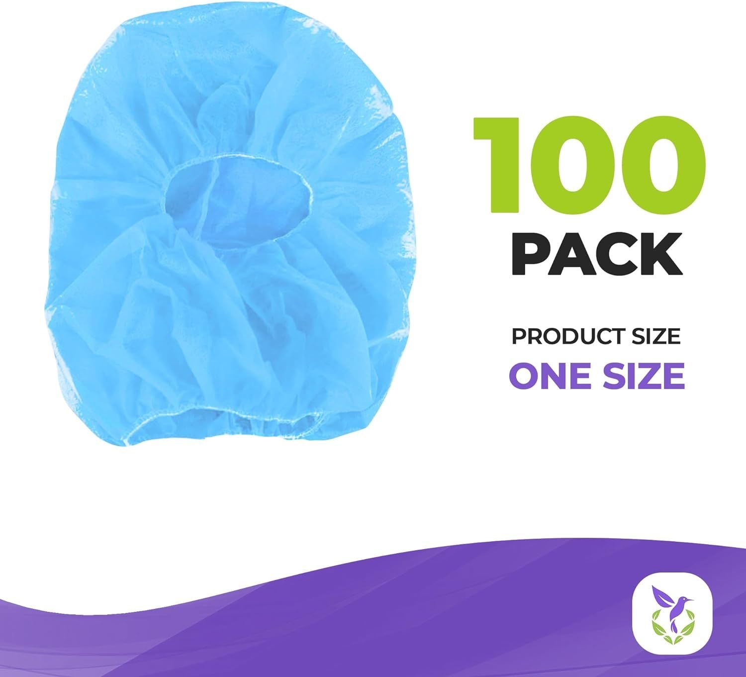 Polypropylene Hoods. Pack of 100 Blue Hooded Caps; Elastic Non-Woven Hoods Universal Size Hair Covers for Industrial Use. Breathable; Lightweight; Uni