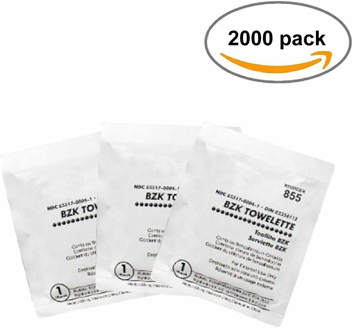 Dukal BZK Towelettes. Pack of 2000 Pre-moistened Wipes. Cleansing Wipes for Hand Washing. Benzalkonium Chloride Pads in Individual Packets. Latex-free