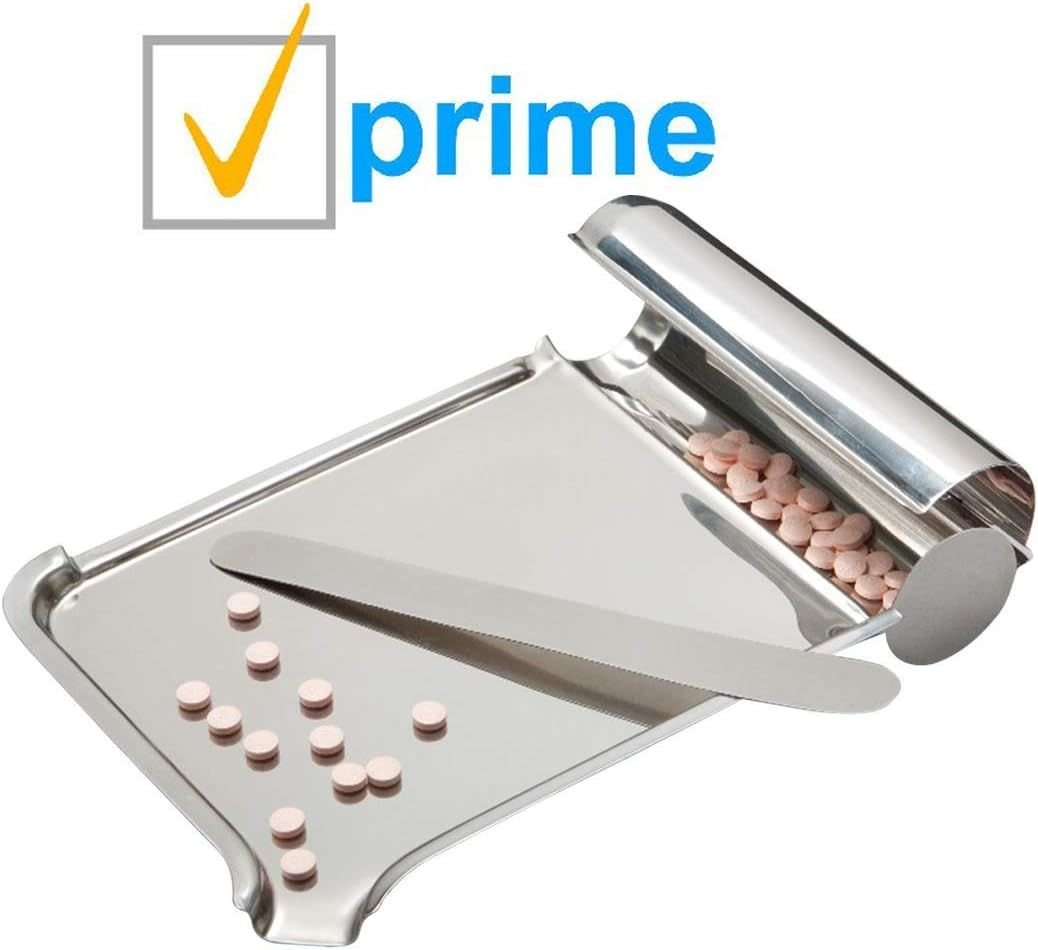 Home > Dukal Stainless Steel Pill Counting Tray with Spatula 8.46 x 5.90 x 1.37. Case of 10 Seamless Flat Trays. Medical Instrument Tray. Ideal for Count Med