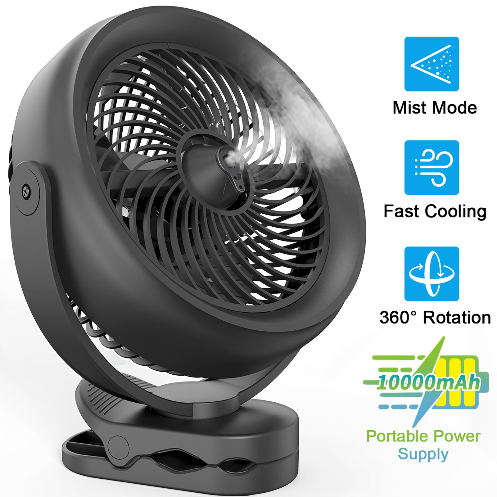 [Unique Misting Function]This clip misting fan comes with 2 mist modes: continuous mode and Intermittent mode. With a 200ml tank, the desk fan can work 1-2 hours on different modes. Compared with other clip fan, this misting fan provides you with endless cooling, you’ll have plenty of coverage even for outdoor spaces.