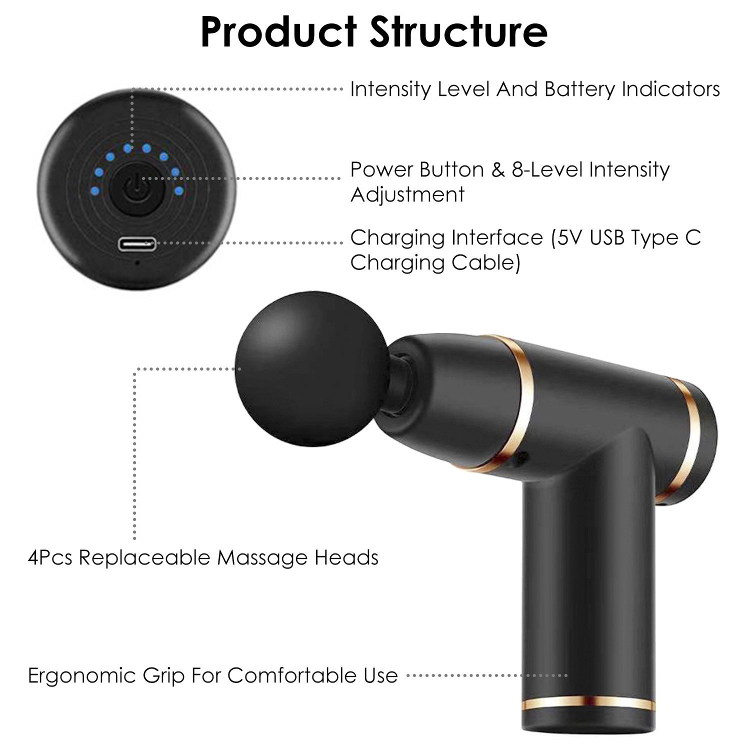 *Handheld & Portable Massager*:T-shaped ergonomic designed grip minimizes external vibrations and makes the massager easier and comfortable to hold for your massage. You can charge the massage machine through included USB Type C charging cable; the machine of compact size can be carried on your gym bag or backpack.