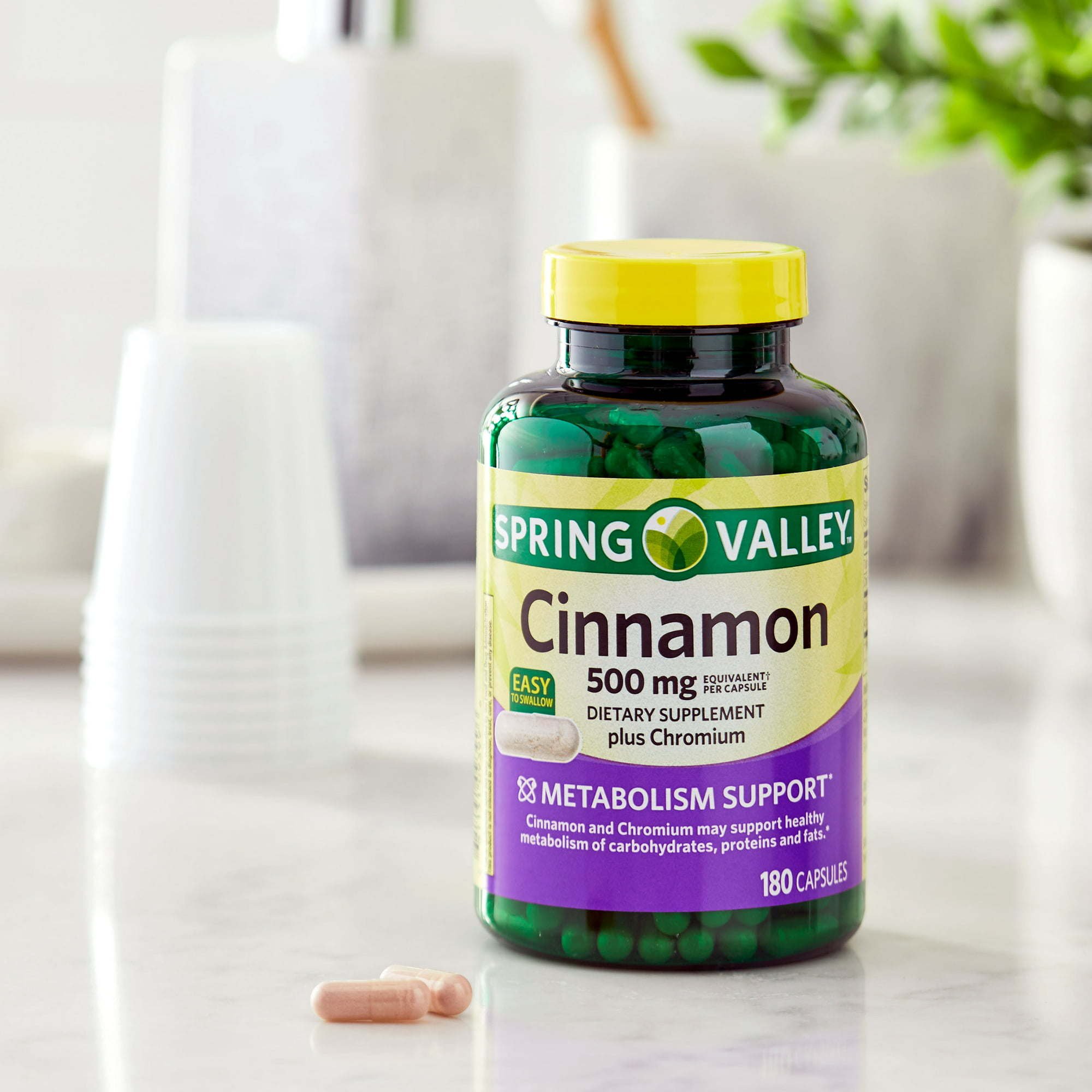 Spring Valley Cinnamon Plus Chromium Capsules Dietary Supplement;  500 mg;  180 Count Spring Valley Cinnamon Plus Chromium Capsules Dietary Supplement;  500 mg;  180 Count Spring Valley Cinnamon Plus Chromium Capsules Dietary Supplement;  500 mg;  180 Count