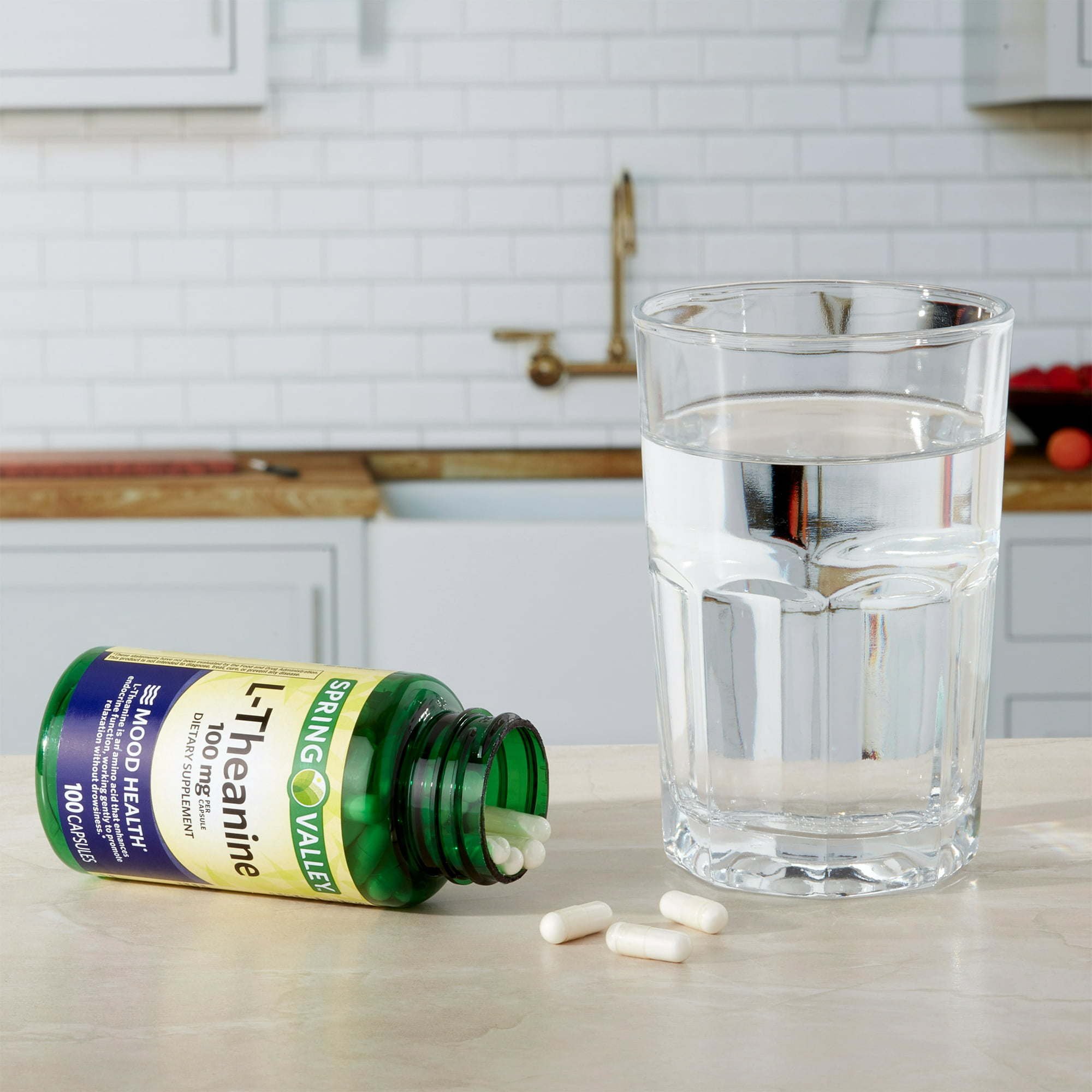 Spring Valley L-Theanine Capsules Dietary Supplement;  100 mg;  100 Count Spring Valley L-Theanine Capsules Dietary Supplement;  100 mg;  100 Count Spring Valley L-Theanine Capsules Dietary Supplement;  100 mg;  100 Count