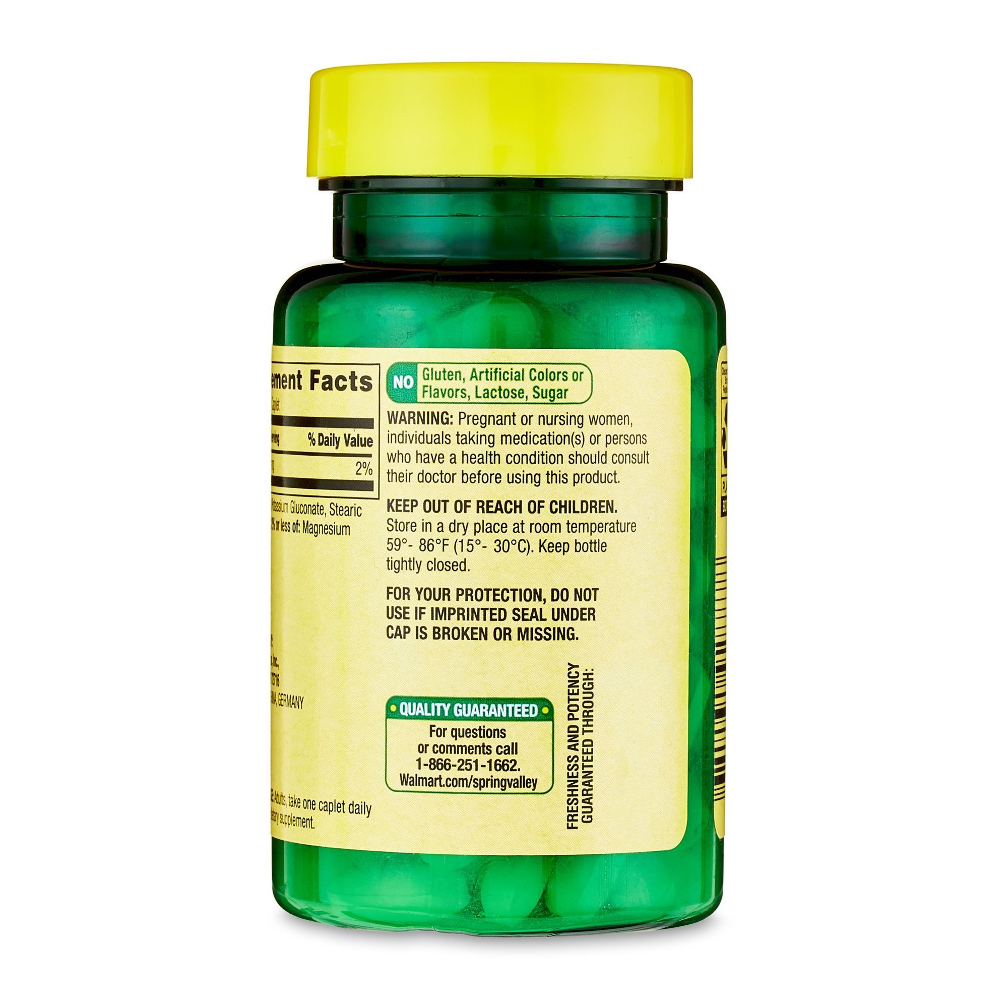 Our Spring Valley Potassium Caplets Dietary Supplement; 99 mg is formulated to promote a healthy heart.* Each caplet delivers 99 mg of potassium. Diet healthy in potassium along with potassium supplement support heart health.* This formula contains no gluten; lactose; sugar; artificial colors or flavors; and is also suitable for a vegetarian diet. You can rest assured that Spring Valley Potassium Caplets Dietary Supplement; 99 mg is produced with strict quality guidelines and is backed by our quality guarantee.